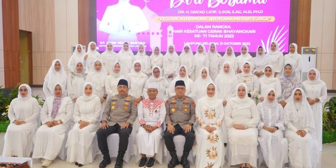 Lampung Selatan (sundalanews.com) – Dalam meningkatkan iman dan taqwa, Polda Lampung adakan ceramah dan do’a bersama dalam rangka hari kesatuan gerak Bhayangkari ke 71 tahun 2023. Bertempat di gedung GSG Presisi Polda Lampung, Jum’at (13/10/23).