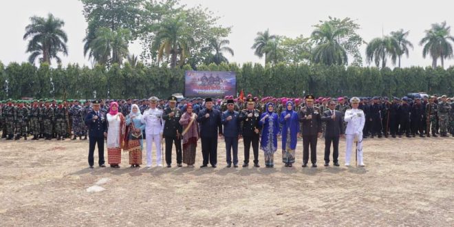 Upacara peringatan HUT TNI ke-78 Tahun 2023 ini mengusung tema ‘TNI Patriot NKRI, Pengawal Demokrasi untuk Indonesia Maju’, bertindak sebagai Inspektur Upacara Komandan Korem 043/Gatam Brigjen TNI Iwan Ma’ruf Zainudin.
