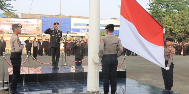 Upacara diikuti oleh pejabat utama, para perwira, seluruh personil Polres Metro dan Polsek jajaran serta ASN dan upacara bertema “Bersama Majukan Indonesia”.