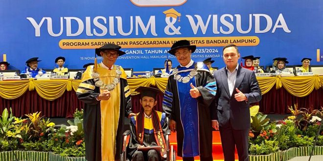 Kini cita cita dan impian Aziz Hermawan terwujud, dia berhasil menuntaskan pendidikan sarjana di prodi Arsitektur UBL. Aziz Hermawan merupakan satu dari 648 wisudawan yang dikukuhkan dalam kegiatan Yudisium dan Wisuda Program Sarjana dan Pascasrjana UBL Periode Ganjil Tahun Akademik 2023 – 2024 yang berlangsung di Mahligai Agung Convention Hall, Rabu (15/11/2023).