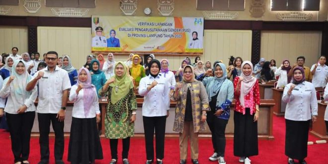 Bandar Lampung (sundalanews.com) – Gubernur Lampung yang diwakili oleh Kepala Dinas Pemberdayaan Perempuan dan Perlindungan Anak Provinsi Lampung, Fitrianita Damhuri, membuka Kegiatan Verifikasi Lapangan Evaluasi Pengarusutamaan Gender Tahun 2023, bertempat di Gedung Pusiban Kantor Gubernur Lampung, Rabu (22/11/2023).