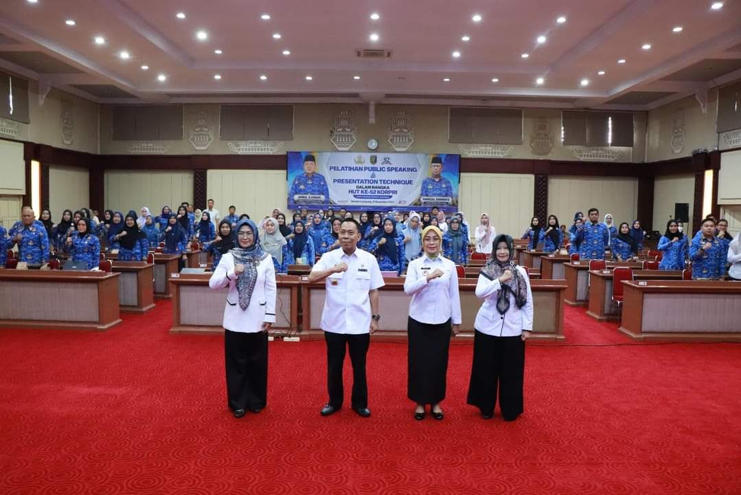 Bandar Lampung (sundalanews.com) – Ketua Dewan Pengurus Korpri Provinsi Lampung diwakili Staf Ahli bidang Kemasyarakatan & SDM, Intizam, membuka Pelatihan Public Speaking dan Presentation Technique di Gedung Pusiban, Rabu (15/11/2023).