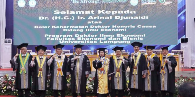 Bandar Lampung (sundalanews.com) – Pemberian Gelar Kehormatan Doctor Honoris Causa (Dr. HC) oleh Universitas Lampung kepada Ir. Arinal Djunaidi bukan karena jabatannya sebagai kepala daerah, namun karena Ir. Arinal Djunaidi adalah alumni Universitas Lampung yang terpilih menjadi Gubernur Lampung Periode 2019-2024.