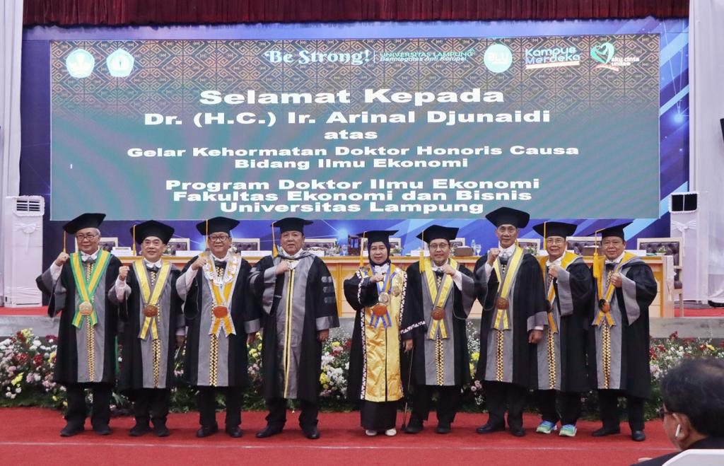 Ir. Arinal Djunaidi dianugerahi gelar Dr. HC atas karyanya yang luar biasa dalam mewujudkan pembangunan berkelanjutan di Lampung melalui Program KPB.