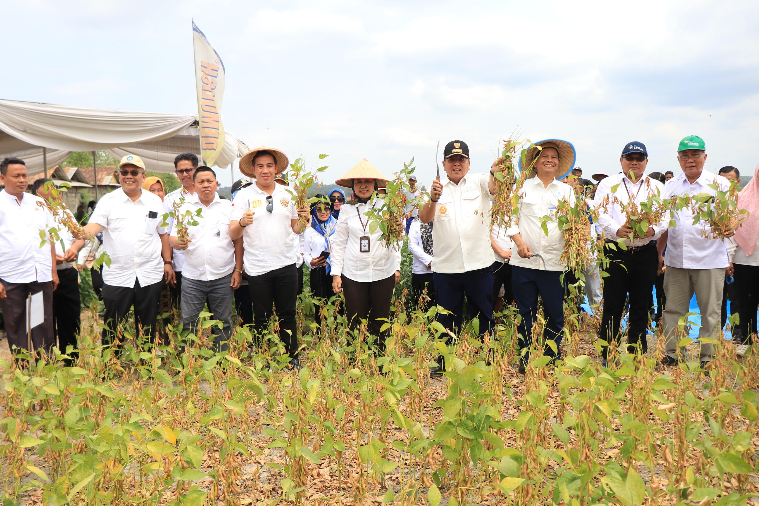 Adapun didalam pemanenan ini, Gubernur Lampung memanen Kedelai varietas Dega 1 dan Grobokan dari delapan varietas, yaitu: Detap 1, Dena 1, Denasa 1, Deja 2, Devon 1, Dega 1, Demas 1, dan Grobokan. yang ditanam di Kebun Percobaan penelitian yang dilakukan Fakultas Pertanian Universitas Lampung. (Dinas Kominfotik Provinsi Lampung)