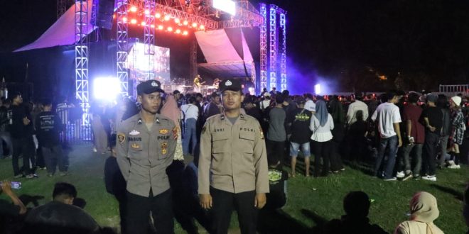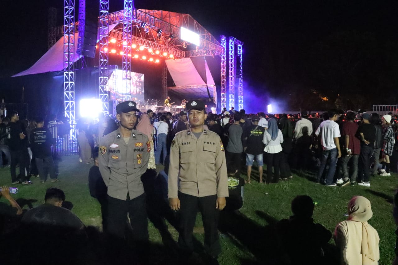 Metro (sundalanews.com) – Polres Metro Polda Lampung, Bertempat di Lapangan 16C Kelurahan Mulyojati Kec. Metro Barat Kota Metro, Jajaran Polres Metro menggelar pengamanan Kegiatan Konser Music PT. Rokok Class Mild yang menghadirkan bintang tamu Band The Changcuters, Jumat (08/12/2023).