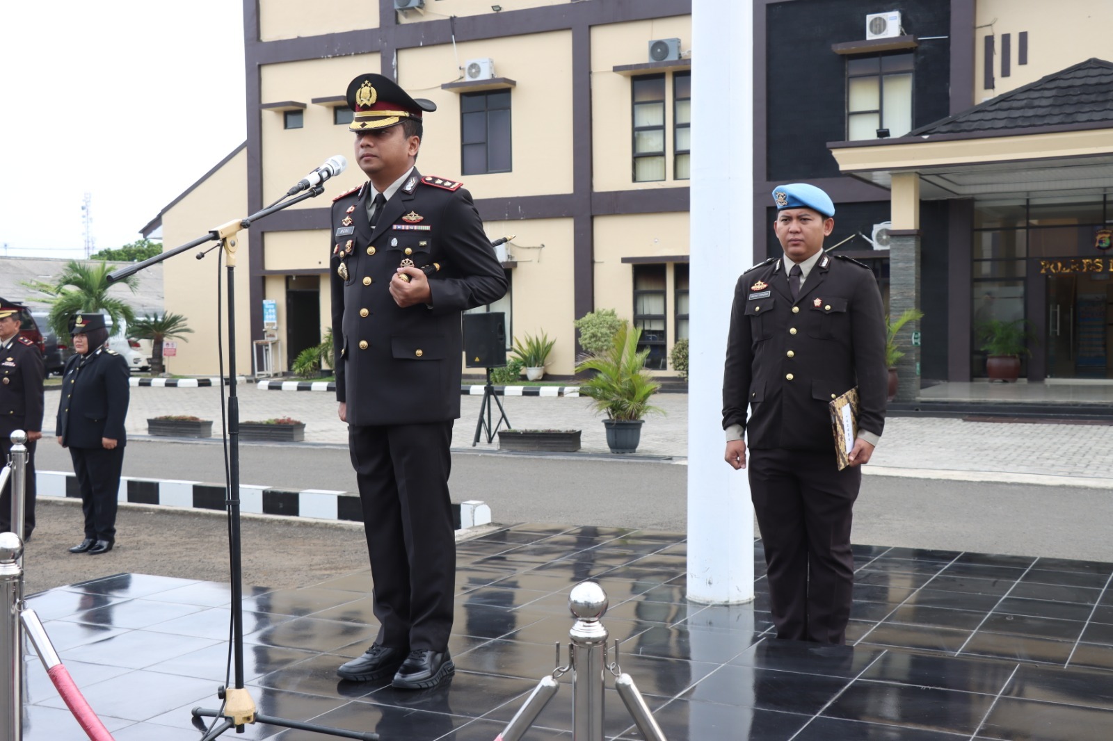 Kapolres Metro membaca amanat Presiden Republik Indonesia, Ir. Joko Widodo, menyampaikan rasa syukur ke hadirat Tuhan Yang Maha Esa, pada tanggal 19 Desember ini, dapat memperingati Hari Bela Negara ke- 75.