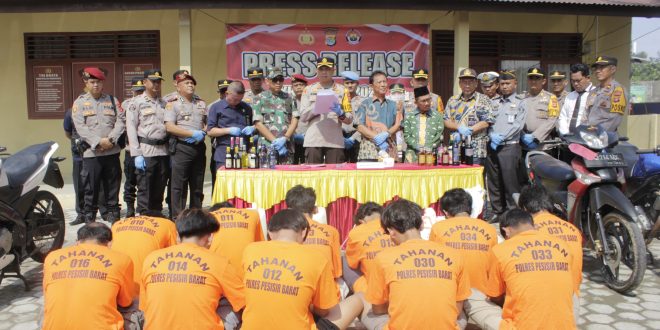 Pada kesempatan ini juga Polres Pesisir Barat memusnahkan barang bukti miras yang didapatkan dalam pelaksanaan Razia miras selama tahun 2023 sebanyak 201 botol miras dan 30 liter miras jenis tuak.