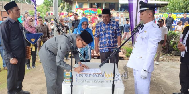 PESISIR BARAT (SUNDALANEWS.COM) – Bupati Pesisir Barat (Pesibar), Dr. Drs. Agus Istiqlal, S.H., M.H., melantik Peratin Terpilih Antar Waktu Kota Jawa Kecamatan Bangkunat, Hendra, S.Pd., di Balai Pekon setempat, Jumat (19/1/2024).