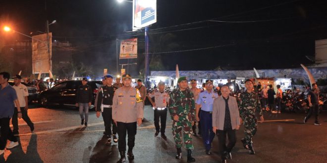 Lampung Utara (sundalanews.com) – Kapolres Lampung Utara AKBP Teddy Rachesna, S.H., S.I.K., M.Si. bersama Forkopimda Lampung Utara memantau Langsung kegiatan pengamanan malam Tahun Baru 2024, minggu malam (31/12/23).