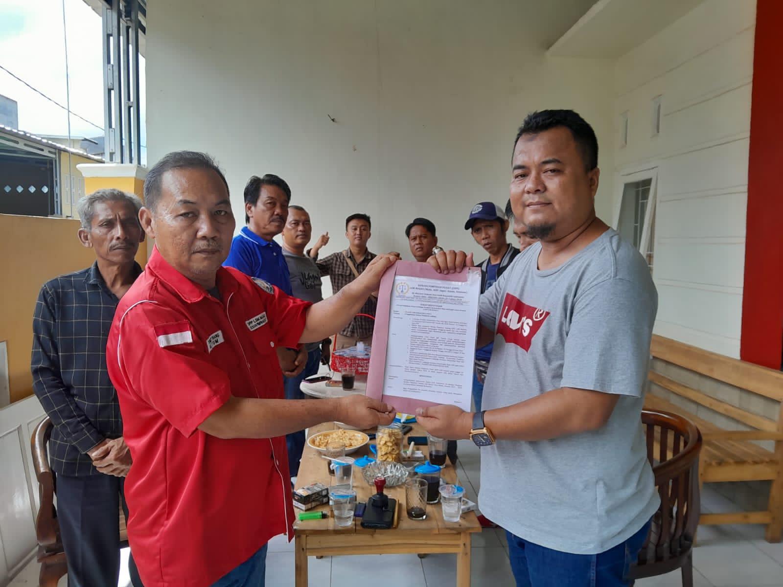 Foto : Ketua DPP LSM Majas, Tarmizi Tihang saat menyerahkan SK Ketua DPC kepada Rio Renaldo. (Roby)