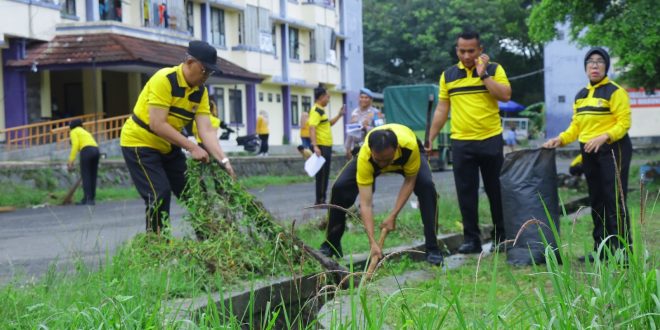 METRO (sundalanews.com) – Bentuk kepedulian terhadap lingkungan, Polres Metro melaksanakan kegiatan bakti sosial (baksos) peduli lingkungan. Bakti sosial dipimpin oleh Wakapolres Metro Kompol Sigiet Aji Vambyun S.H, S.IK, bersama Pejabat Utama (PJU) dan personil Polres Metro yang belokasi di Rusunawa Kota Metro.