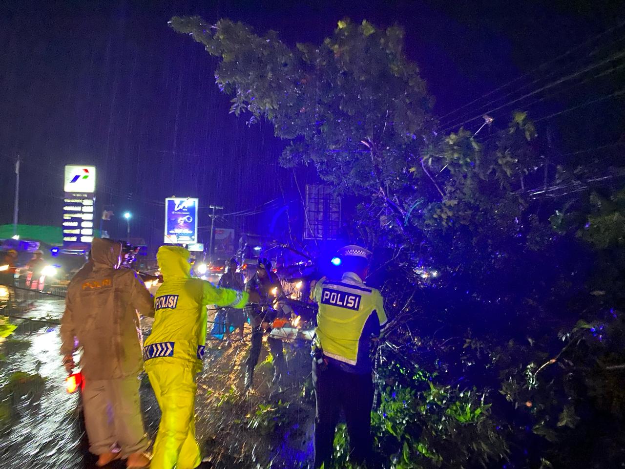 Tulang Bawang (sundalanews.com) – Polres Tulang Bawang, Polda Lampung, melakukan quick respons (respon cepat) atas peristiwa pohon besar tumbang yang menutupi jalan yang diakibatkan oleh hujan deras.