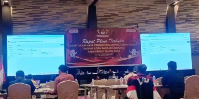 Bandar Lampung (sundalanews.com) – KPU Kota Bandar Lampung mulai menggelar pleno rekapitulasi suara tingkat kabupaten/kota, Sabtu, 2 Maret 2024.