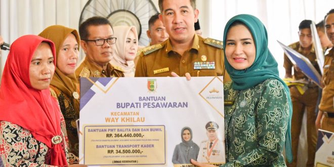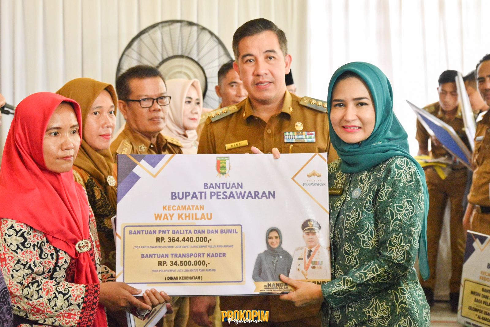 Bupati Dendi juga menyerahkan pagu alokasi penyampaian hasil musrenbang tahun 2024 Kecamatan Kedondong Way Khilau serta beberapa bantuan dari OPD di lingkup Pemkab Pesawaran.