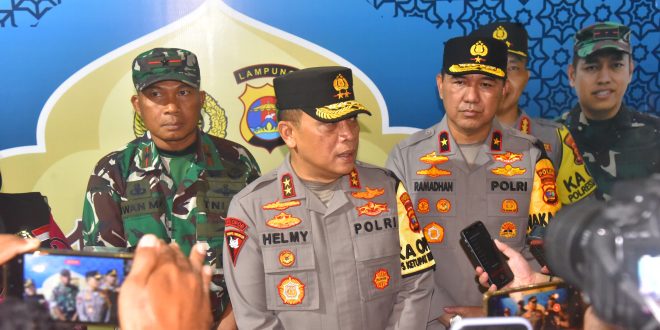 Lampung (sundalanews.com) – Kepala Kepolisian Daerah (Kapolda) Lampung Irjen Pol Helmy Santika turun langsung mengecek pengamanan malam takbiran menjelang Idul Fitri 1445 H pada Selasa (malam) 09 April 2024 dilakukan untuk memastikan Provinsi Lampung aman.