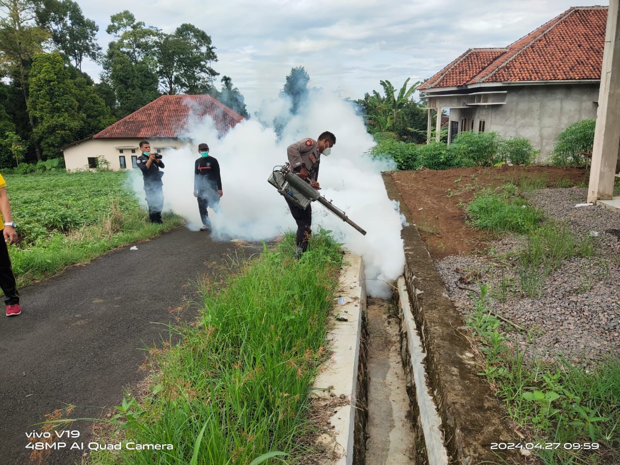 Penyemprotan fogging ini dilakukan secara menyeluruh di pemukiman warga Pekon Kampung Baru serta area sekitar lingkungan Polres Tanggamus.
