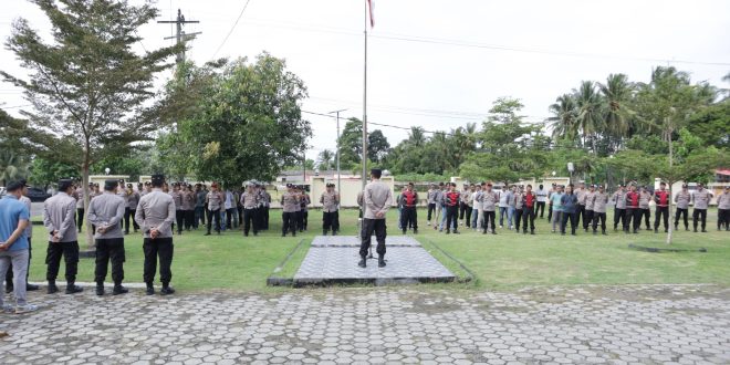 Pesisir Barat (sundalanews.com) – Polres Pesisir Barat menggelar apel pengecekan personel yang terlibat Pengamanan Krui Pro WSL QS 5000 Pesisir Barat tahun 2024 di Mako Polsek Pesisir Selatan, Sabtu (25/05/24).