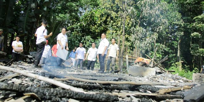 “Atas nama pemerintah kami turut prihatin atas terjadinya musibah kebakaran ini,” ujar Nanang menyemangati Slamet Purnomo.
