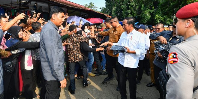 Pada kunjungan tersebut, Presiden Jokowi membagikan sejumlah bantuan berupa paket sembako dan modal kerja kepada masyarakat dan pendagang pasar.