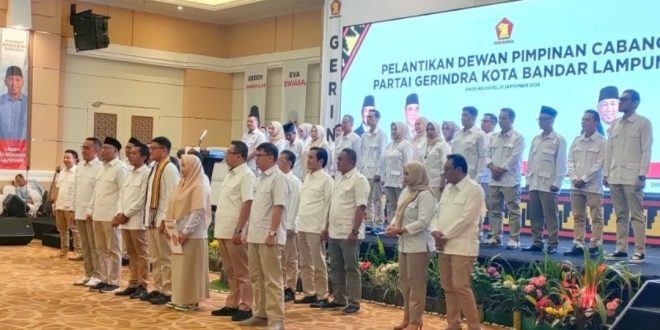 Pelantikan tersebut berlangsung di Swissbel Hotel Bandar Lampung pada Sabtu (21/9/2024). Dipimpin oleh Ketua DPD Gerindra Lampung, Rahmat Mirzani Djausal.