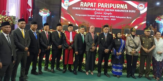 Buru, Maluku (SUNDALANEWS,.COM) – Sebanyak 25 anggota Dewan Perwakilan Rakyat Daerah (DPRD) Kabupaten Buru periode 2024-2029 resmi dilantik dalam rapat paripurna pengucapan sumpah dan janji. (3/9)