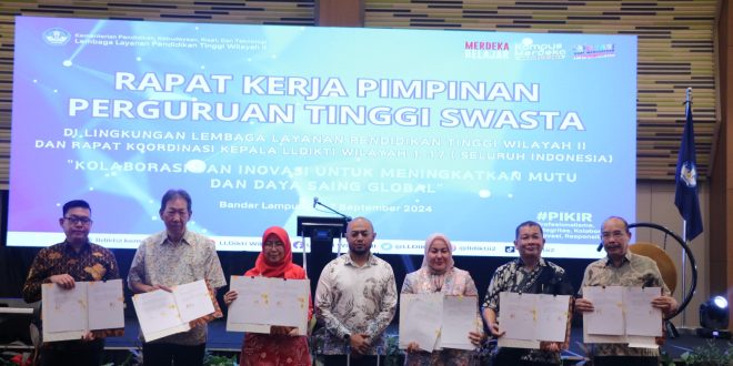 BANDAR LAMPUNG (sundalanews.com) – Institut Informatika dan Bisnis (IIB) Darmajaya bersama 13 perguruan tinggi lainnya di Lembaga Layanan Pendidikan Tinggi Wilayah II melakukan kerjasama dengan Badan Pengembangan Sumber Daya Manusia (BPSDM) Komunikasi dan Informatika Kementerian Komunikasi dan Informatika Republik Indonesia.