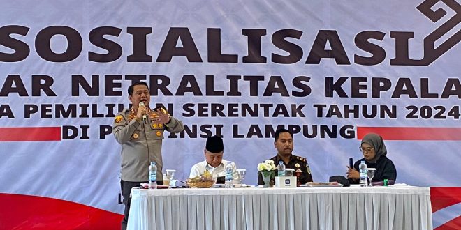 Lampung Tengah (sundalanews.com) – Kapolres Lampung Tengah, Polda Lampung AKBP Andik Purnomo Sigit, S.H., S.I.K., M.M menghadiri acara sosialisasi dan ikrar netralitas bagi kepala desa yang digelar di Caffe Moonbe & Resto, Bandar Jaya dalam rangka menyambut Pilkada Serentak Tahun 2024. Rabu (25/9/24) siang