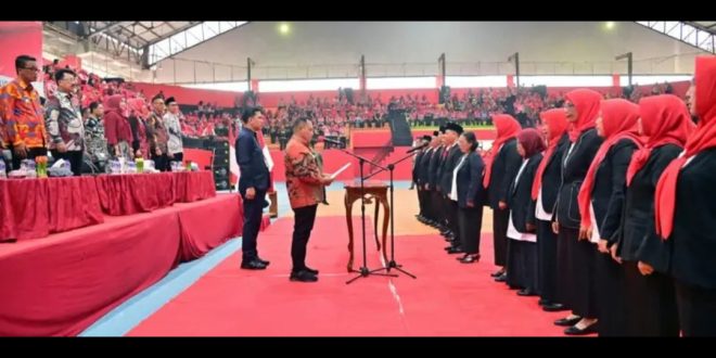 Kalianda (sundalanews.com) – Bupati Lampung Selatan, H. Nanang Ermanto melantik dan mengambil sumpah janji 18 pejabat fungsional guru di lingkungan Pemerintah Kabupaten (Pemkab) Lampung Selatan, di Gor Way Handak, Kalianda, Jumat (6/9/2024).
