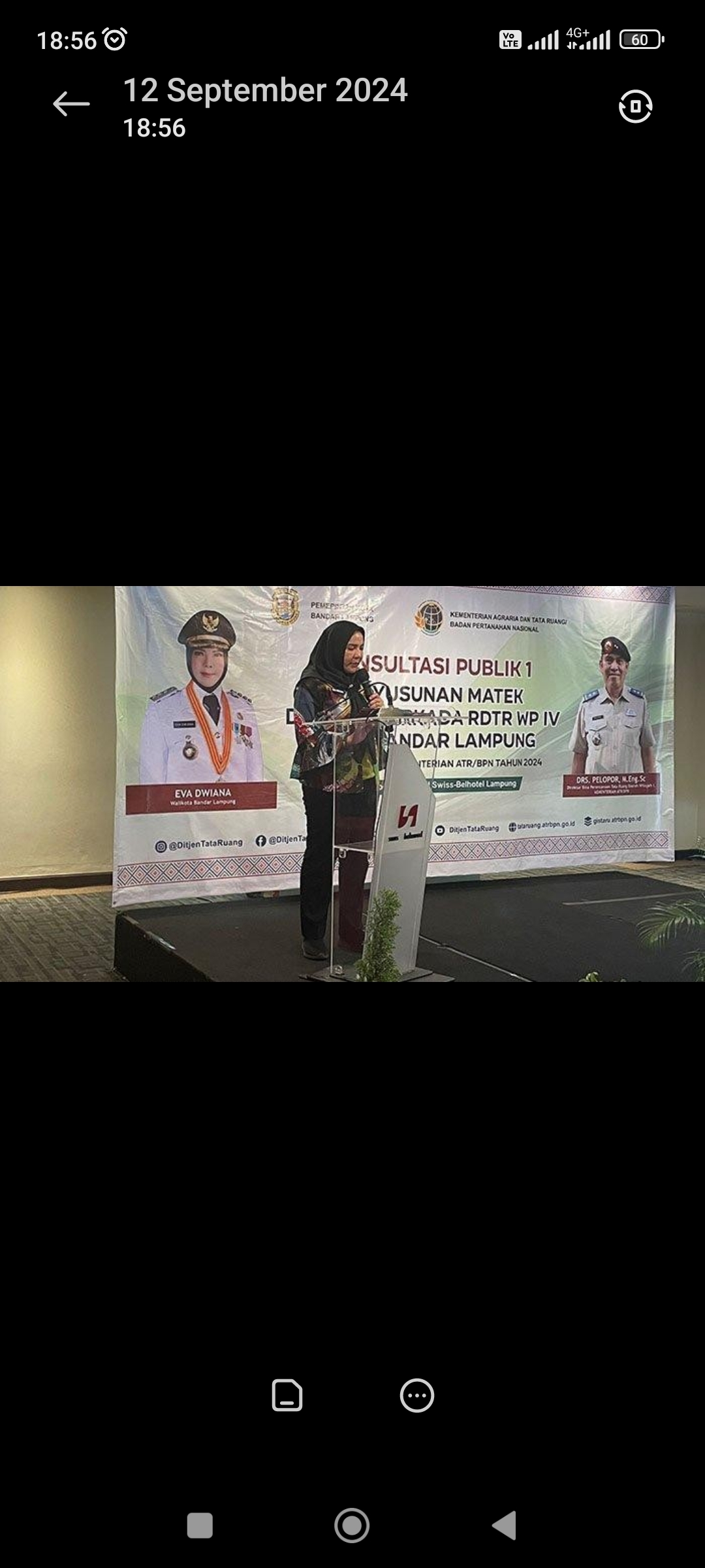 “Itulah dasar perencanaannya,” kata Eva Dwiana saat sambutan Konsultasi Publik I Penyusunan Materi dan Ranperkada RDTR Wilayah Perencanaan (WP) I Kota Bandar Lampung di Swiss Bell Hotel, Kamis (12/09/2024).