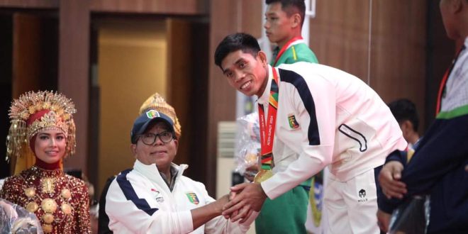 “Alhamdulillah, kita berhasil meraih emas dari muaythai. Semua ini berkat perjuangan, kerja keras, dan semangat pantang menyerah,” ujar Pj. Gubernur Samsudin.