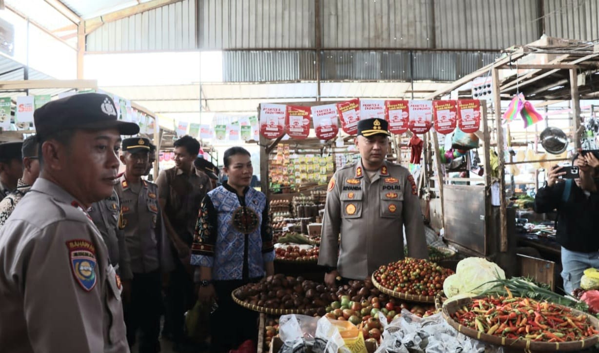 Dalam kesempatan tersebut, Kapolres menyusuri berbagai lapak pedagang yang menjual kebutuhan pokok seperti cabai, bawang, tomat, telur, ikan, dan bahan pokok lainnya. Selain berinteraksi langsung dengan pedagang dan pembeli, Kapolres juga membeli beberapa kebutuhan pokok untuk memahami kondisi pasar secara lebih dekat.