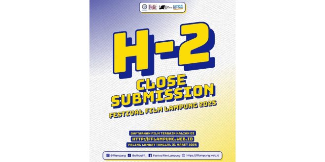 BANDAR LAMPUNG (sundalanews.com) – Kabar gembira bagi para sineas yang belum sempat mengirimkan karyanya ke ajang bergengsi Festival Film Lampung (FFL) 2025. Unit Kegiatan Mahasiswa (UKM) Darmajaya Computer & Film Club (DCFC) Institut Informatika dan Bisnis (IIB) Darmajaya melakukan perpanjangan open submission hingga 21 Maret 2025 pukul 23.59 WIB. Dengan diperpanjangnya masa pendaftaran, diharapkan semakin banyak karya keren dan luar biasa para sineas muda dari berbagai daerah di Indonesia.