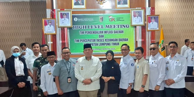 Lampung Timur (sundalanews.com) – Kepala Otoritas Jasa Keuangan (OJK) Provinsi Lampung, Otto Fitriandy, sebagai pembina dan pengawas Tim Percepatan Akses Keuangan Daerah (TPAKD) menghadiri High Level Meeting (HLM) TPID dan TPAKD Kabupaten Lampung Timur yang digelar di Kantor Bupati Lampung Timur. Pada rapat ini juga dihadiri Forum Koordinasi Pimpinan Daerah (Forkopimda), Bank Indonesia (BI), serta Badan Pusat Statistik (BPS).