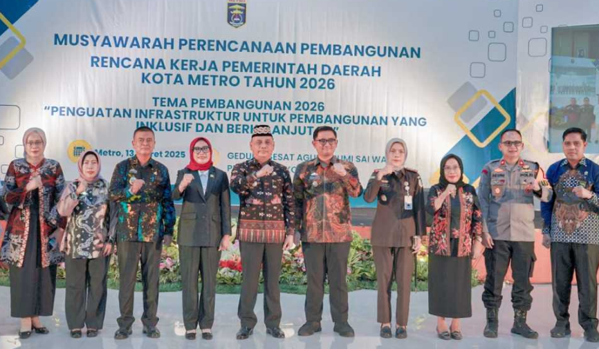 Metro (sundalanews.com) — Pemerintah Kota (Pemkot) Metro menggelar Musyawarah Rencana Pembangunan (Musrenbang) tingkat kota rencana kerja tahun 2026. Acara berlangsung di Gedung Sessat Agung Bumi Sai Wawai, Kamis (13/3/2025).