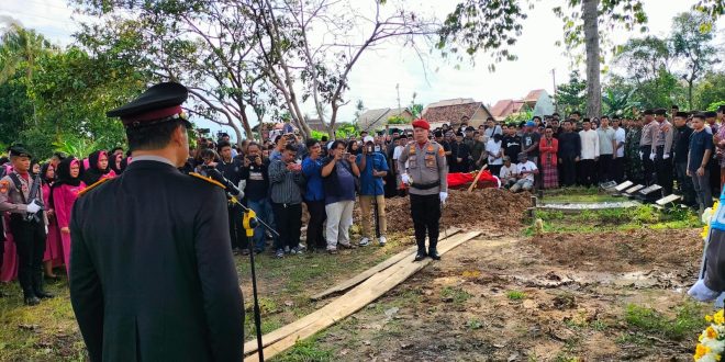 Lampung (sundalanews.com) – Briptu (Anumerta) M Ghalib Surya Ganta, salah satu dari tiga anggota Polri yang gugur dalam tugas saat penggerebekan judi sabung ayam di Kabupaten Way Kanan, Lampung, telah dimakamkan dengan prosesi kedinasan yang penuh haru.