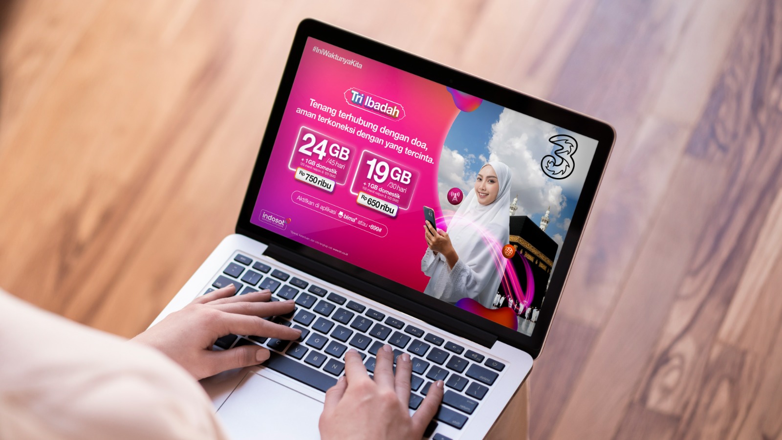 Pelanggan dapat membeli produk Tri Ibadah dengan mudah melalui aplikasi bima+, USSD *899# dan WhatsApp Tri Official 0899-9800-123. Dengan berbagai pilihan kuota dan harga yang bersaing, Tri Ibadah menjadi teman terpercaya bagi jamaah untuk tetap terhubung di momen spiritual yang penuh makna. Untuk informasi lebih lanjut, kunjungi tri.co.id/tri-ibadah.