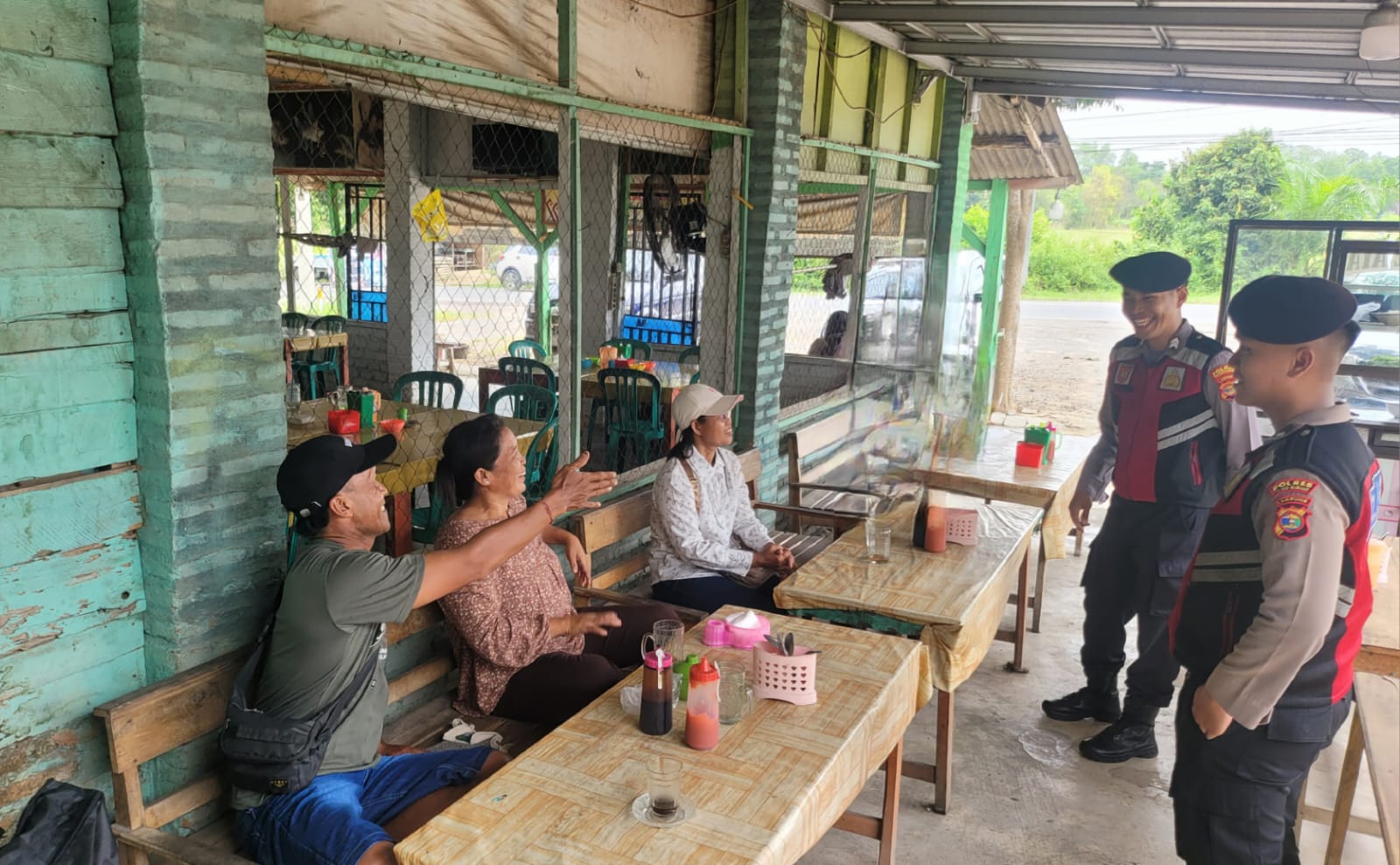 Lanjutnya, tiga lokasi berbeda yang menjadi sasaran kegiatan patroli dialogis kali ini, yakni pertama di Loket Bus Damri Pasar Unit 2, kedua di Danastra Finance Pasar Unit 2, dan ketiga di Warung Makan Bu Ani Simpang Lima, Kampung Dwi Warga Tunggal Jaya.