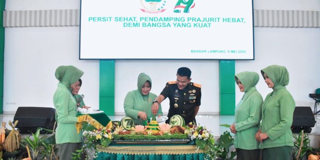Lampung (sundalanews.com) – Komandan Korem 043/Gatam, Brigjen TNI Rikas Hidayatullah, S.E., M.M., selaku Pembina Persit Kartika Chandra Kirana (KCK) Koorcab Rem 043 PD II/Sriwijaya, pada hari Jum’at tanggal 09/05/2025 menghadiri acara syukuran dalam rangka HUT Ke-79 Persit KCK Tahun 2025, Acara tersebut berlangsung di Aula Sudirman Makorem 043/Gatam, Jl. Teuku Umar Penenganan Bandar Lampung.