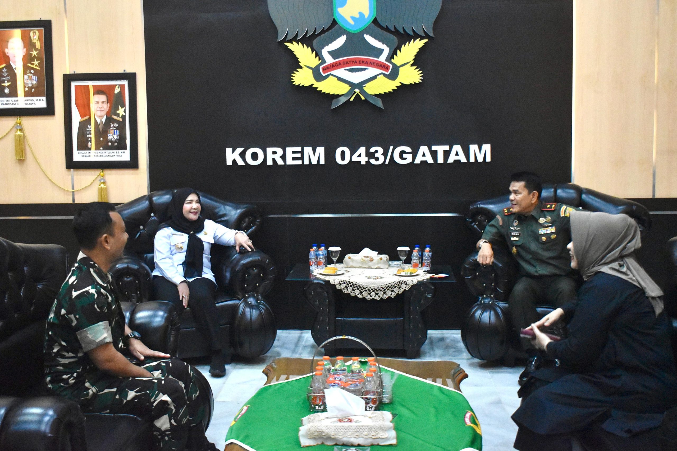 Lampung (sundalanews.com) – Komandan Korem 043/Gatam Brigjen TNI Rikas Hidayatullah, S.E., M.M., didampingi Dandim 0410/KBL Letkol Arm Roni Hermawan, Ketua Persit Kartika Chandra Kirana Koorcab Rem 043 PD II/Sriwijaya Ibu Hanny Rikas Hidayutullah, menyambut kunjungan kerja Wali Kota Bandar Lampung Hj. Eva Dwiana. Kegiatan berlangsung di Ruang Lobi Utama Makorem 043/Gatam, Jalan Teuku Umar, Penengahan, Bandar Lampung.