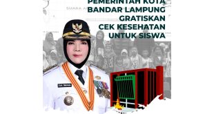Bandar Lampung (sundalanews.com) – Pemerintah Kota Bandar Lampung melalui Dinas Kesehatan terus meningkatkan kualitas layanan kesehatan untuk masyarakat. Selain berobat dan melahirkan gratis bagi seluruh masyarakat Kota Bandar Lampung di seluruh puskesmas dan Rumah Sakit Pemerintah dan Swasta, terbaru Pemerintah Kota Bandar Lampung juga menggratiskan cek kesehatan bagi anak usia …