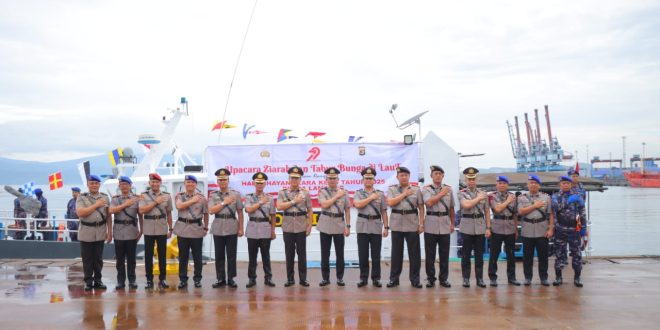 Bandar Lampung (sundalanews.com) – Dalam rangka memperingati Hari Bhayangkara ke-79, Kepolisian Daerah (Polda) Lampung menggelar upacara Ziarah dan Tabur Bunga di Laut berlangsung khidmat di Dermaga B Pelabuhan Panjang, Kota Bandar Lampung, Senin (23/6/2025).