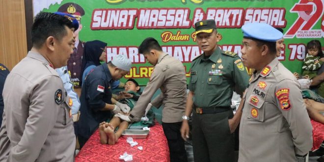 “Khitanan massal gratis yang kami laksanakan ini merupakan salah satu rangkaian kegiatan untuk menyambut Hari Bhayangkara ke-79 tahun 2025, yang acara puncaknya akan diperingati pada tanggal 1 Juli 2025 nanti,” papar perwira dengan melati dua dipundaknya.