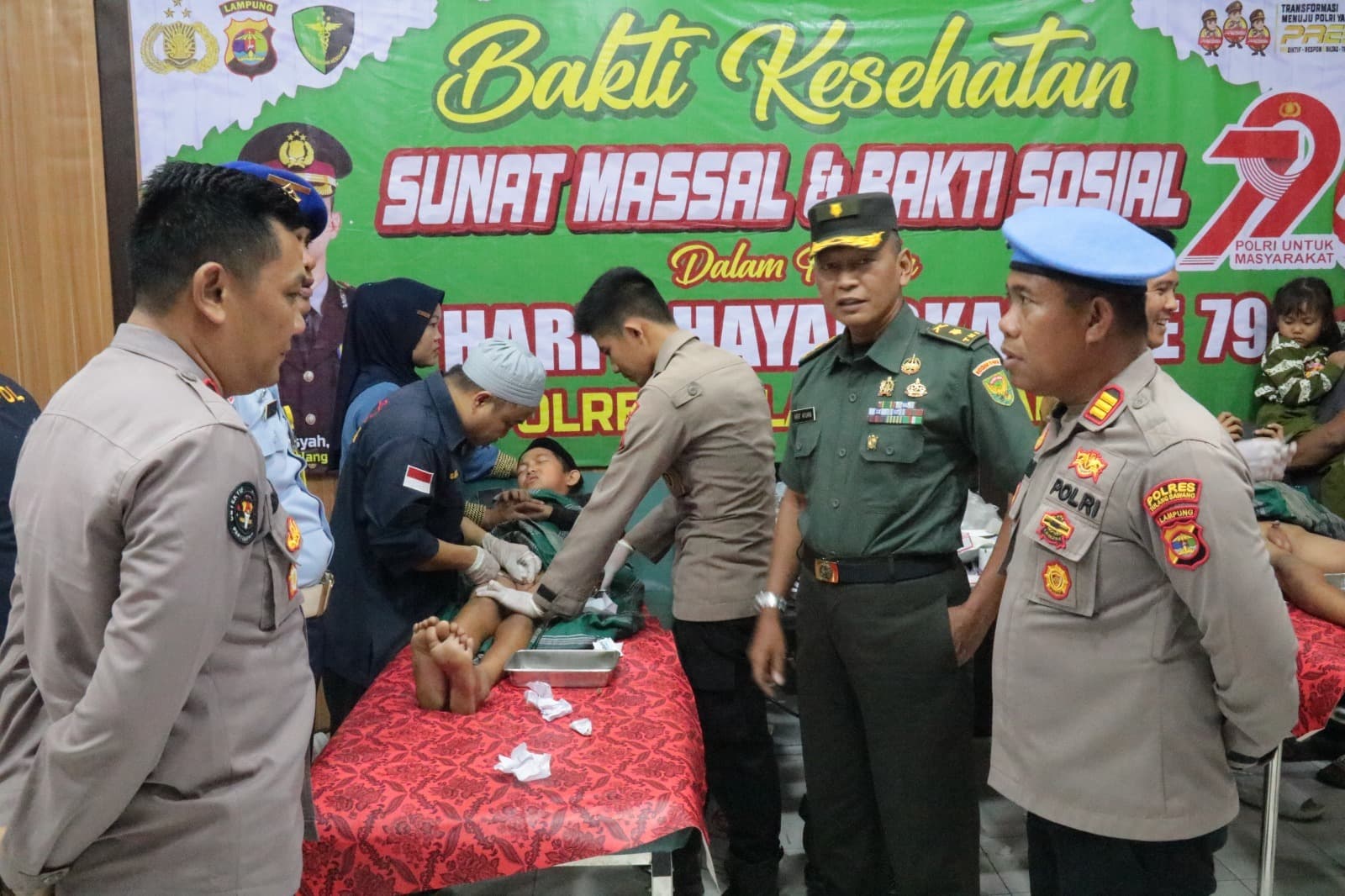 Polres Tulang Bawang, Polda Lampung, menggelar kegiatan bakti kesehatan berupa khitanan massal gratis kepada anak-anak kurang mampu yang ada di wilayah hukumnya guna menyambut Hari Bhayangkara ke-79 tahun 2025.