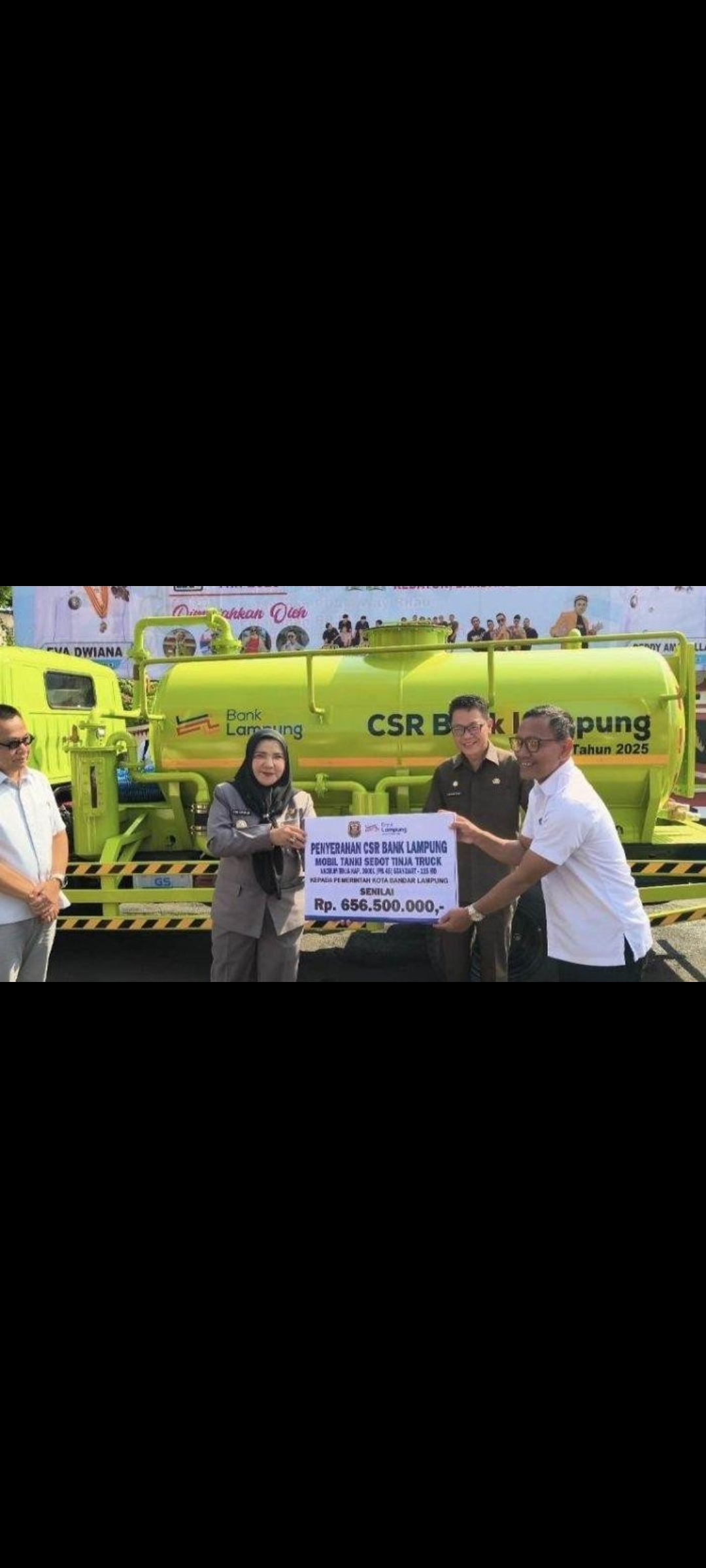 Bandar Lampung (sundalanews.com) – Pemerintah Kota Bandar Lampung menerima bantuan satu mobil tangki tinja dari Bank Lampung.