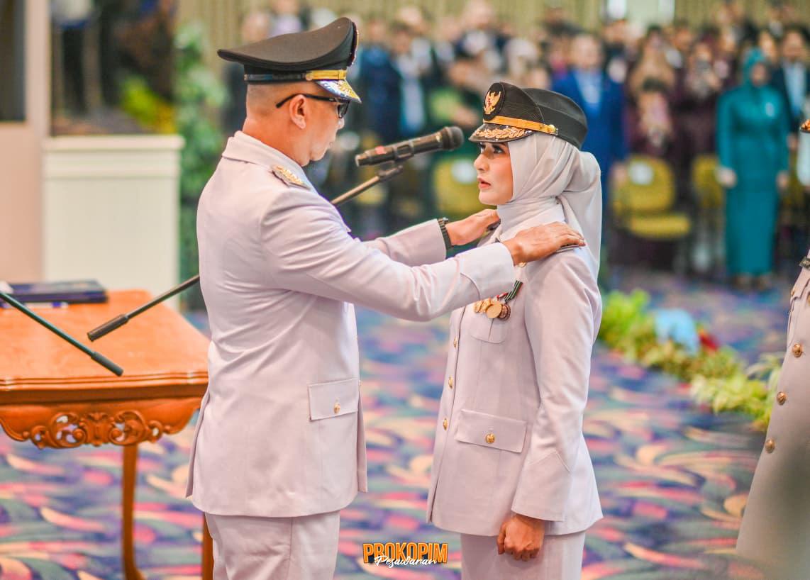 Bandar Lampung (sundalanews.com) – Hj. Nanda Indira Bastian, S.E., M.M., dan Antonius Muhammad Ali, S.H., resmi dilantik sebagai Bupati dan Wakil Bupati Pesawaran periode 2025–2030. Keduanya dilantik langsung oleh Gubernur Lampung Rahmat Mirzani Djausal dalam prosesi yang digelar di Balai Keratun, Kantor Gubernur Lampung, Rabu (27/8/2025).