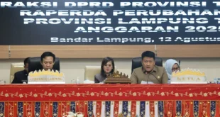 Bandar Lampung (Sundalanews.com) – Sekretaris Daerah Provinsi (Sekdaprov) Lampung, Marindo Kurniawan, menghadiri Rapat Paripurna DPRD Provinsi Lampung lanjutan pembicaraan tingkat I terkait pemandangan umum fraksi-fraksi terhadap Raperda Perubahan APBD Tahun Anggaran 2025, Selasa (12/8/2025). Rapat yang digelar di Ruang Sidang Paripurna tersebut dipimpin langsung oleh Ketua DPRD Lampung, Ahmad Giri Akbar dan …