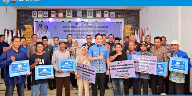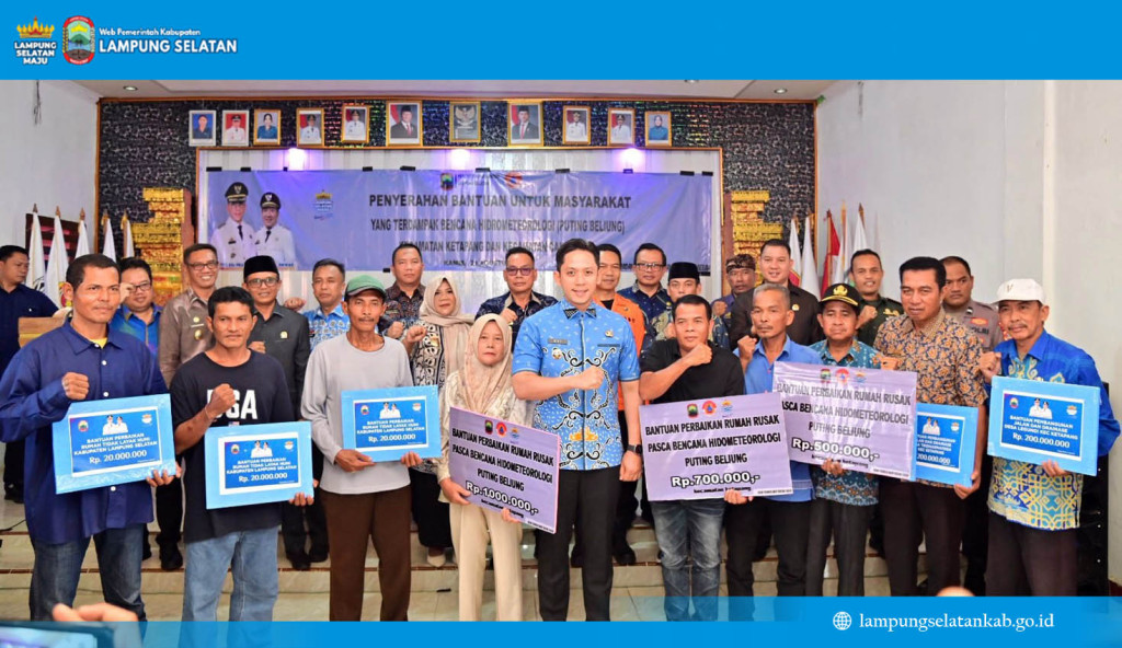 Lampung Selatan (sundalanews.com) – Pemerintah Kabupaten (Pemkab) Lampung Selatan menyerahkan bantuan kepada korban bencana angin puting beliung yang melanda Kecamatan Ketapang dan Candipuro pada Juli 2025 lalu.
