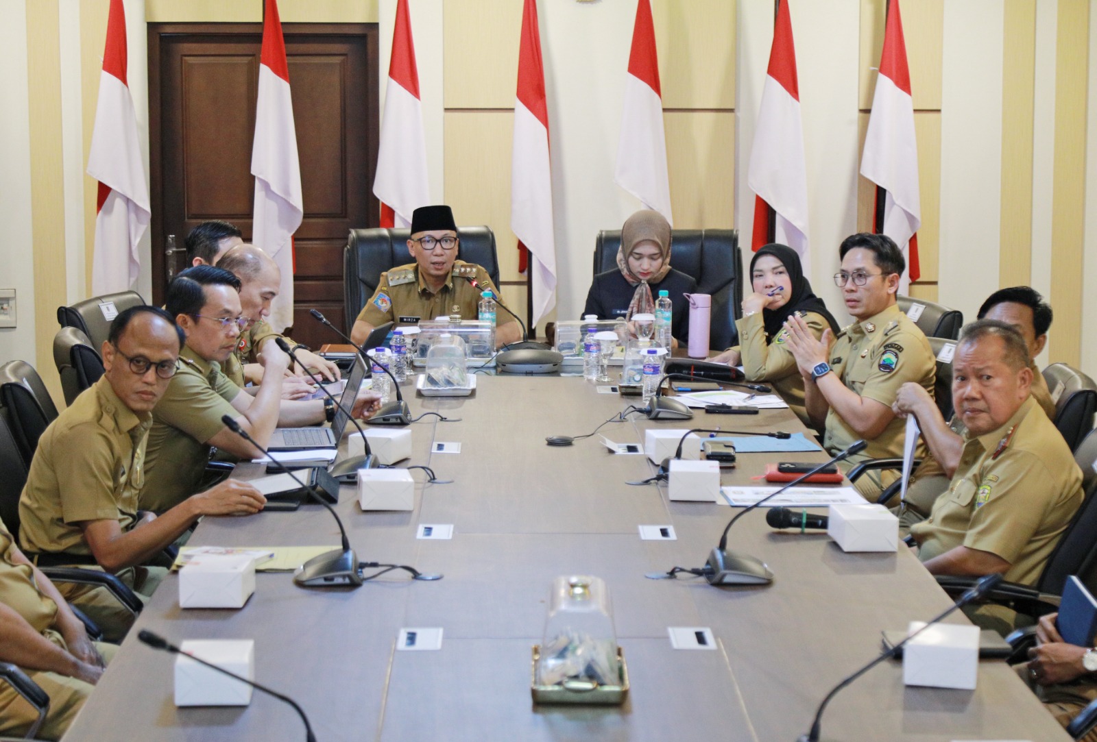 Dengan didampingi Wakil Gubernur Lampung Jihan Nurlela, Gubernur Mirza menggelar Rapat Pengelolaan Sampah Terpadu di Ruang Rapat Sakai Sambayan, Kantor Gubernur Lampung, Senin (11/8/2025).