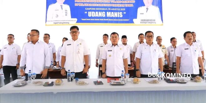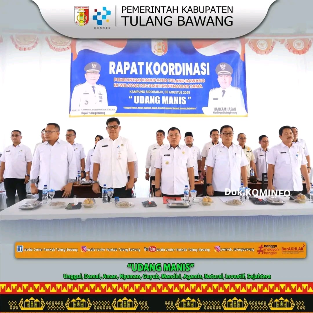 Tulang Bawang (sundalanews.com) – Pemerintah Kabupaten Tulang Bawang terus menunjukkan komitmennya dalam memperkuat sinergi antar pemangku kepentingan. Hal ini tercermin dari kehadiran Wakil Bupati Tulang Bawang, Hankam Hasan, dalam kegiatan Rapat Koordinasi Pemerintah Kecamatan Penawartama yang digelar di Balai Kampung Sidoarjo, Kecamatan Penawartama.